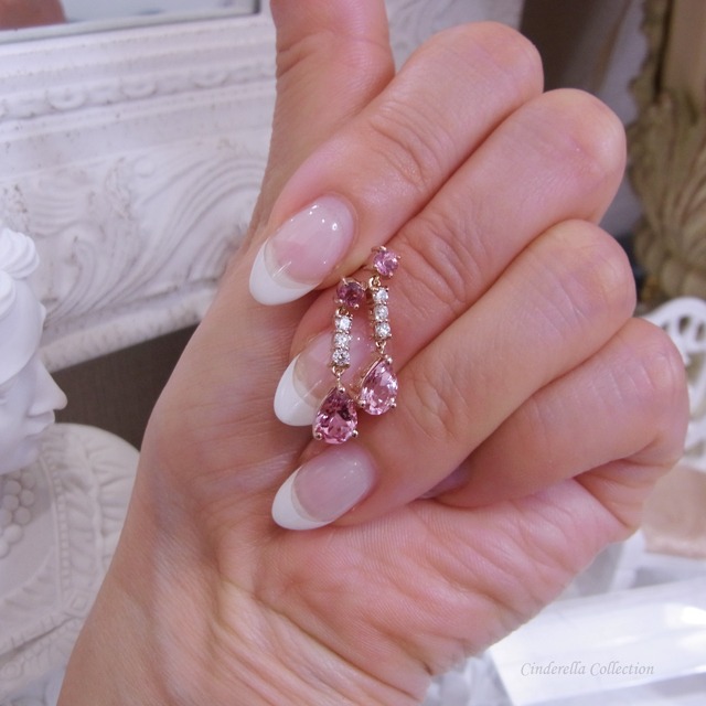 【オーダー可能】ピアス(画像例:ピンクトルマリン) 上下のお色を揃えず、違う種類や、違うお色味の お色遊びでもかわいいですね。