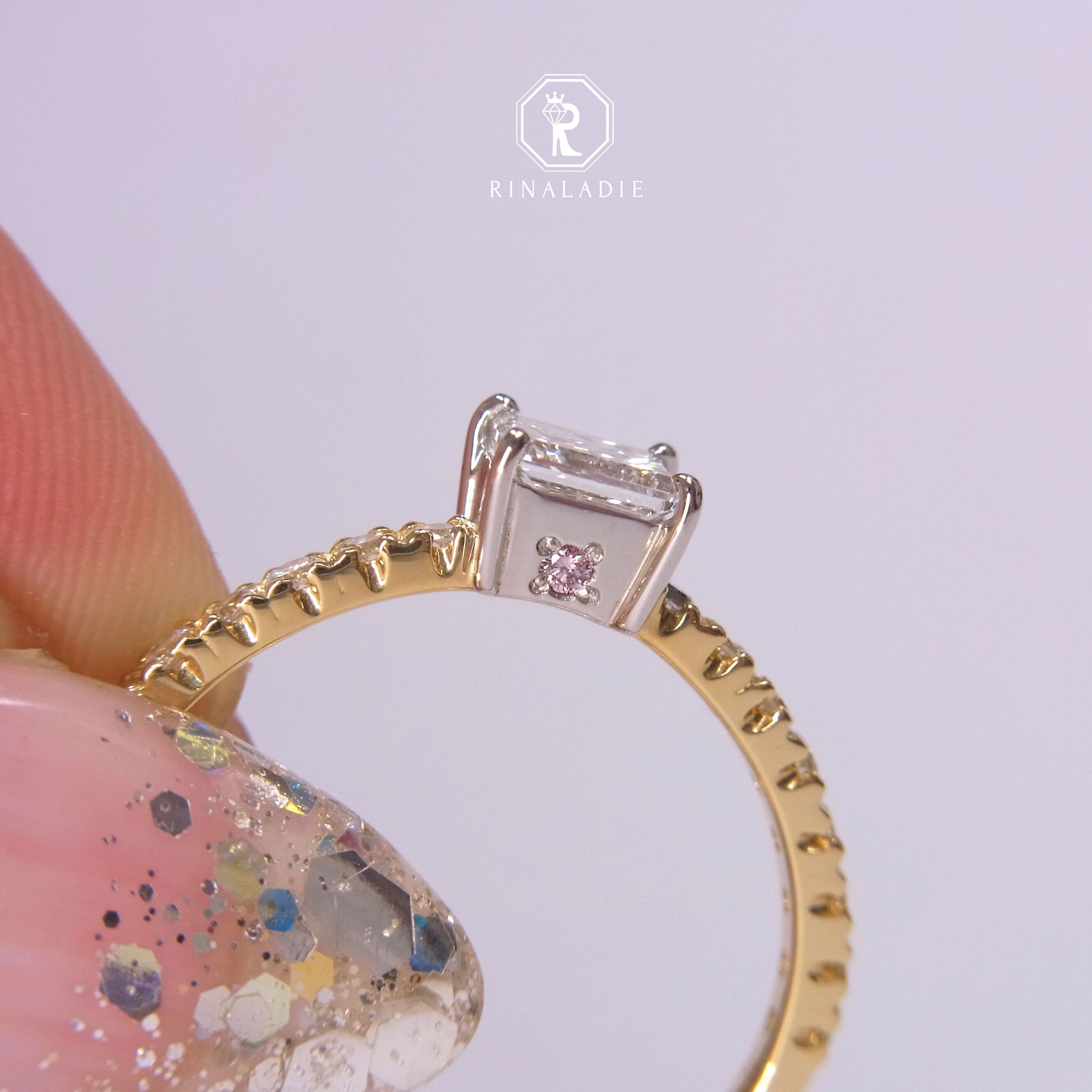 K18YG Pt900 天然ダイヤモンド【ローザーム私だけのピンク】プリンセスカットピンクとブルーダイヤ添えリング