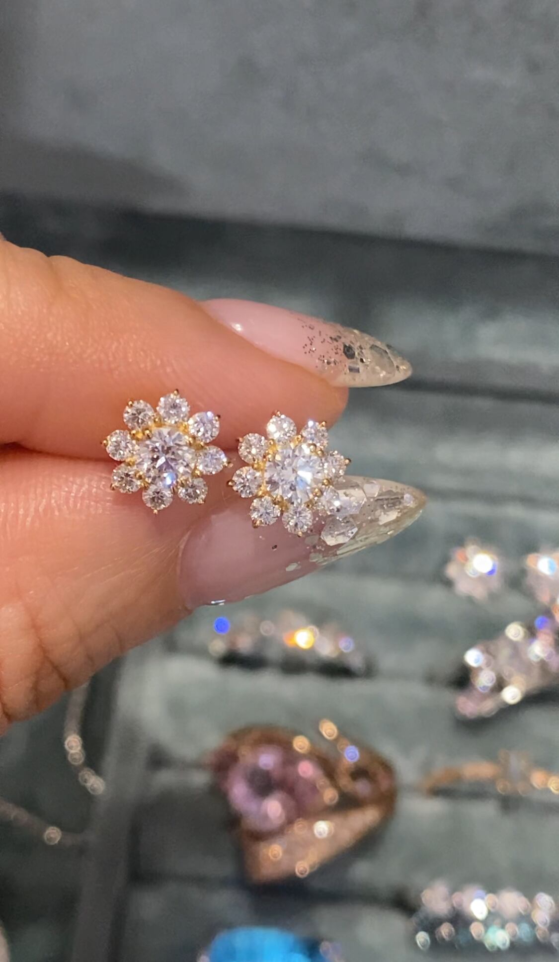 高品質ダイヤモンドをセンターに据えた贅沢なフラワーピアスです。