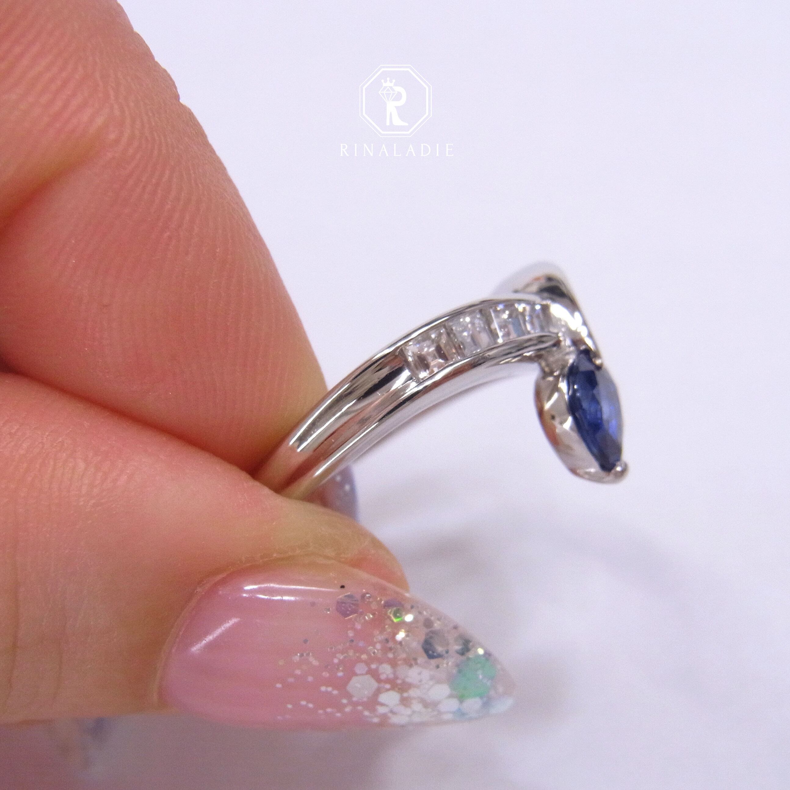 Pt900天然サファイア★ペアシェイプダイヤモンドリング