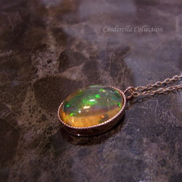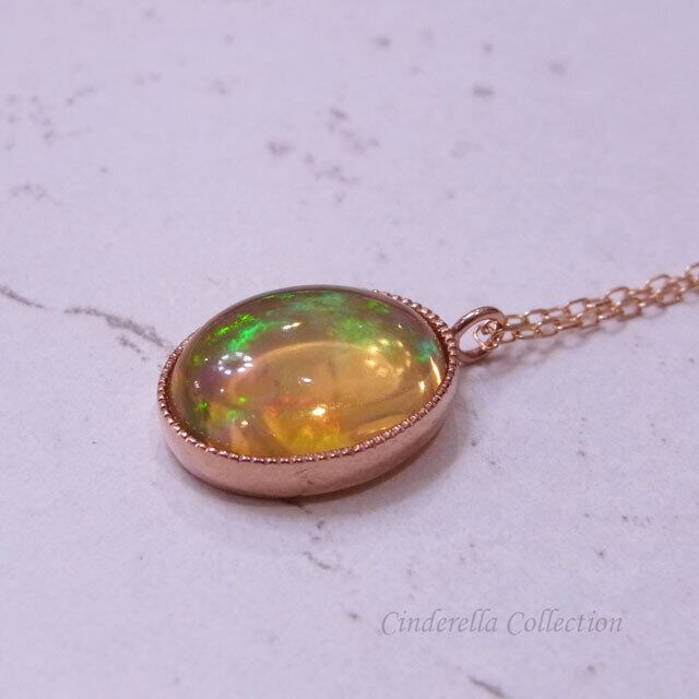 大特価★K18PG天然ファイアオパール3ctUミル打ち覆輪ネックレス