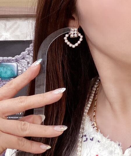 小さなあこや真珠が連なり、耳元で優しく揺れるデザイン。