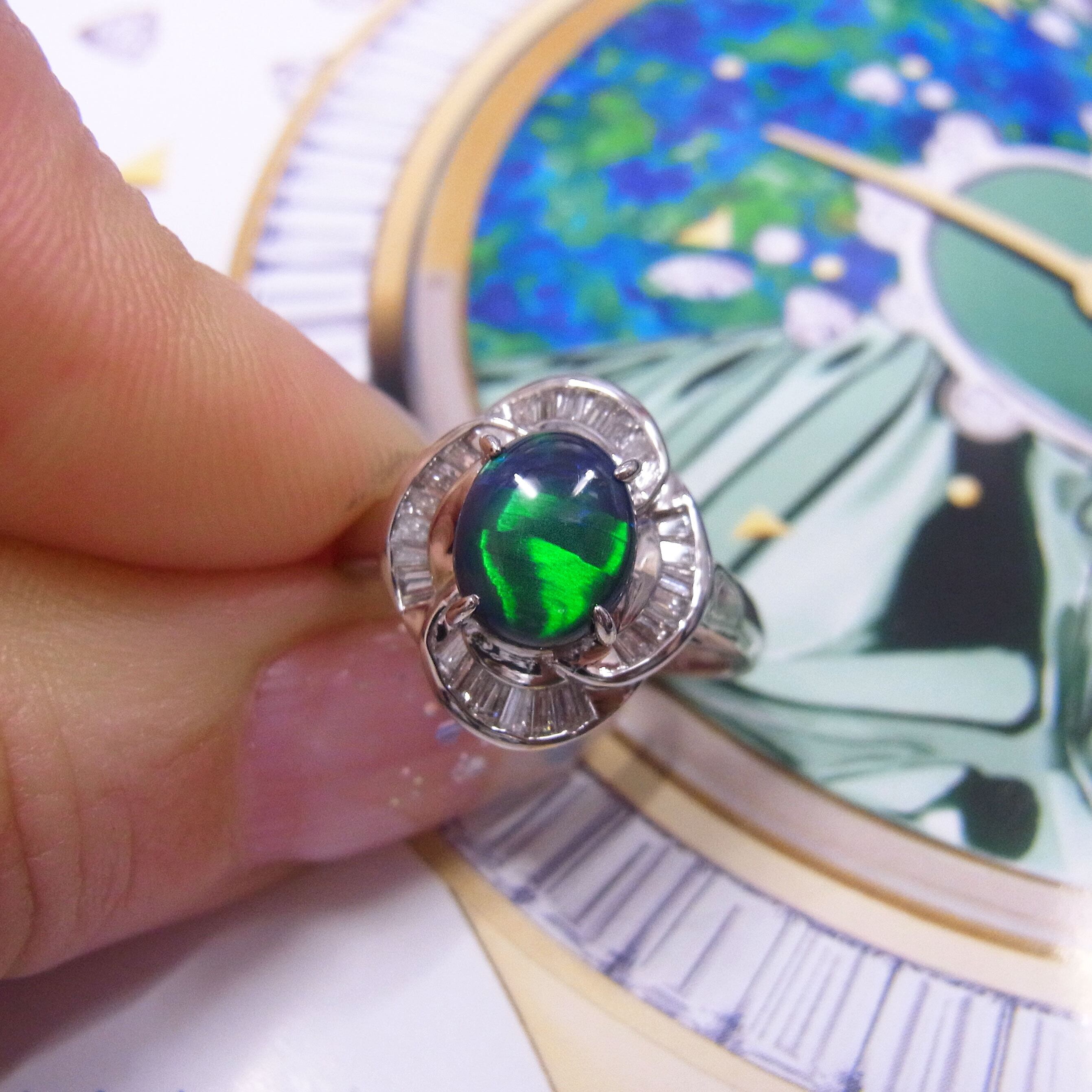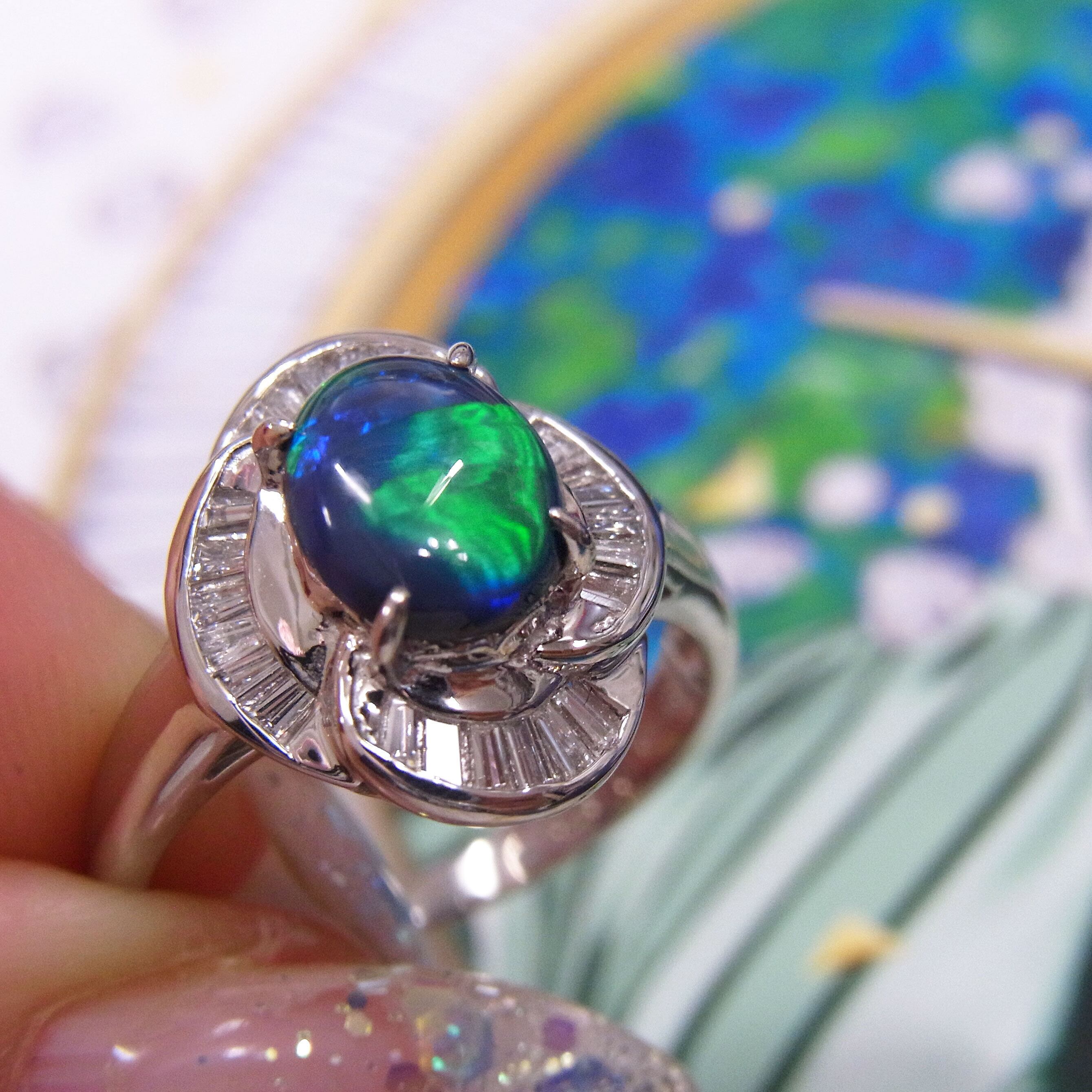 Pt900天然ブラックオパール「静かな夜に呼吸する光」のリング