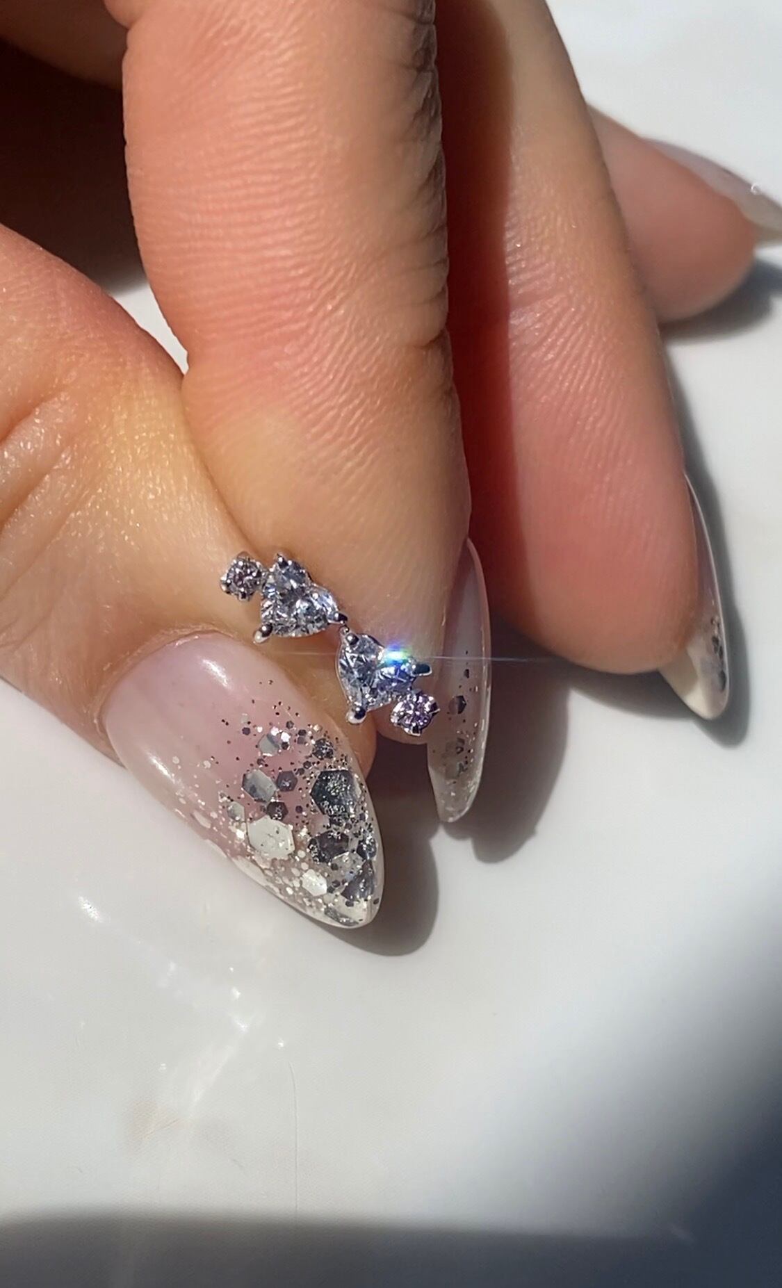 耳たぶに仲良く並んでとってもかわいいピアス。