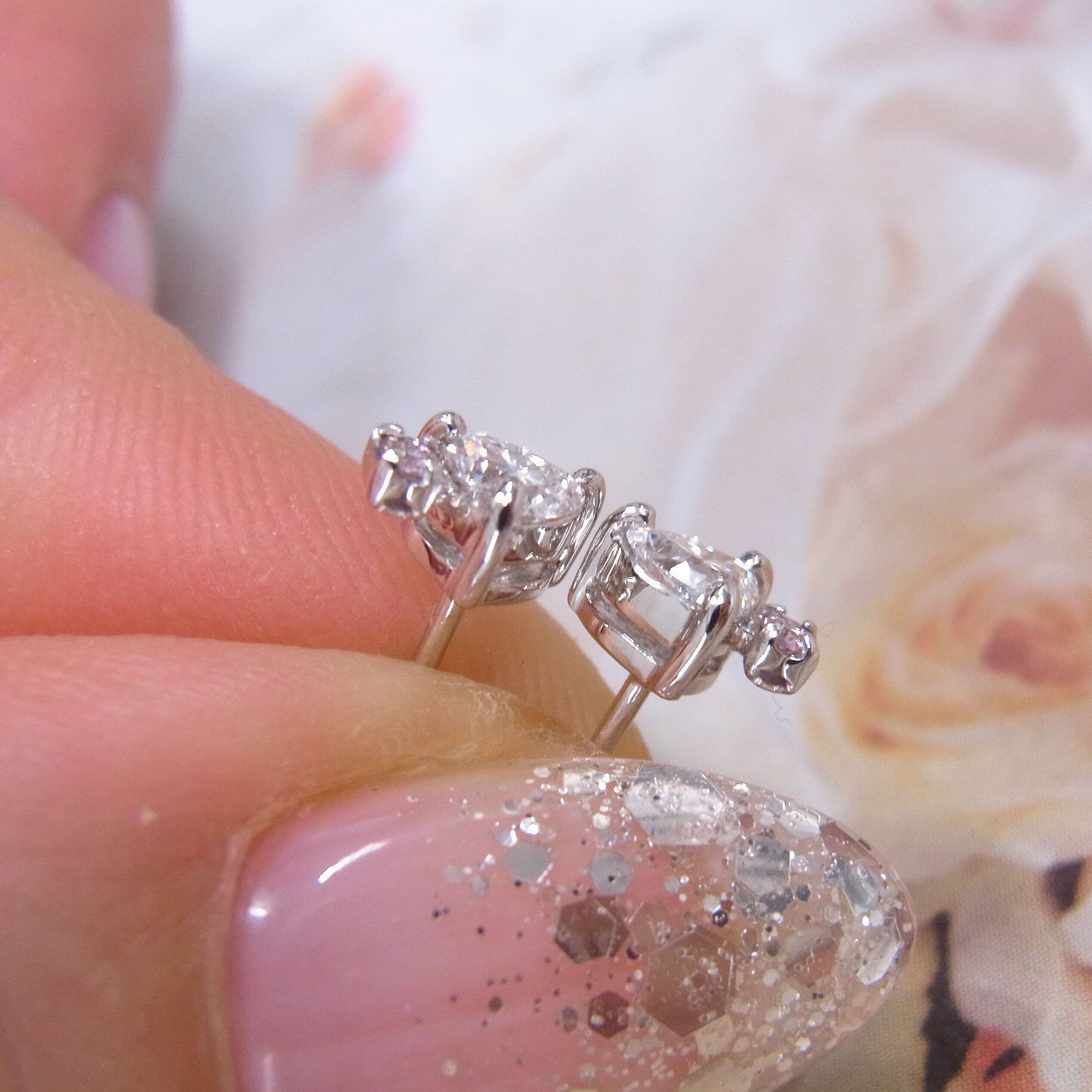 Pt900天然ダイヤモンド★ハートとピンクのいつも一緒のお友達ピアス
