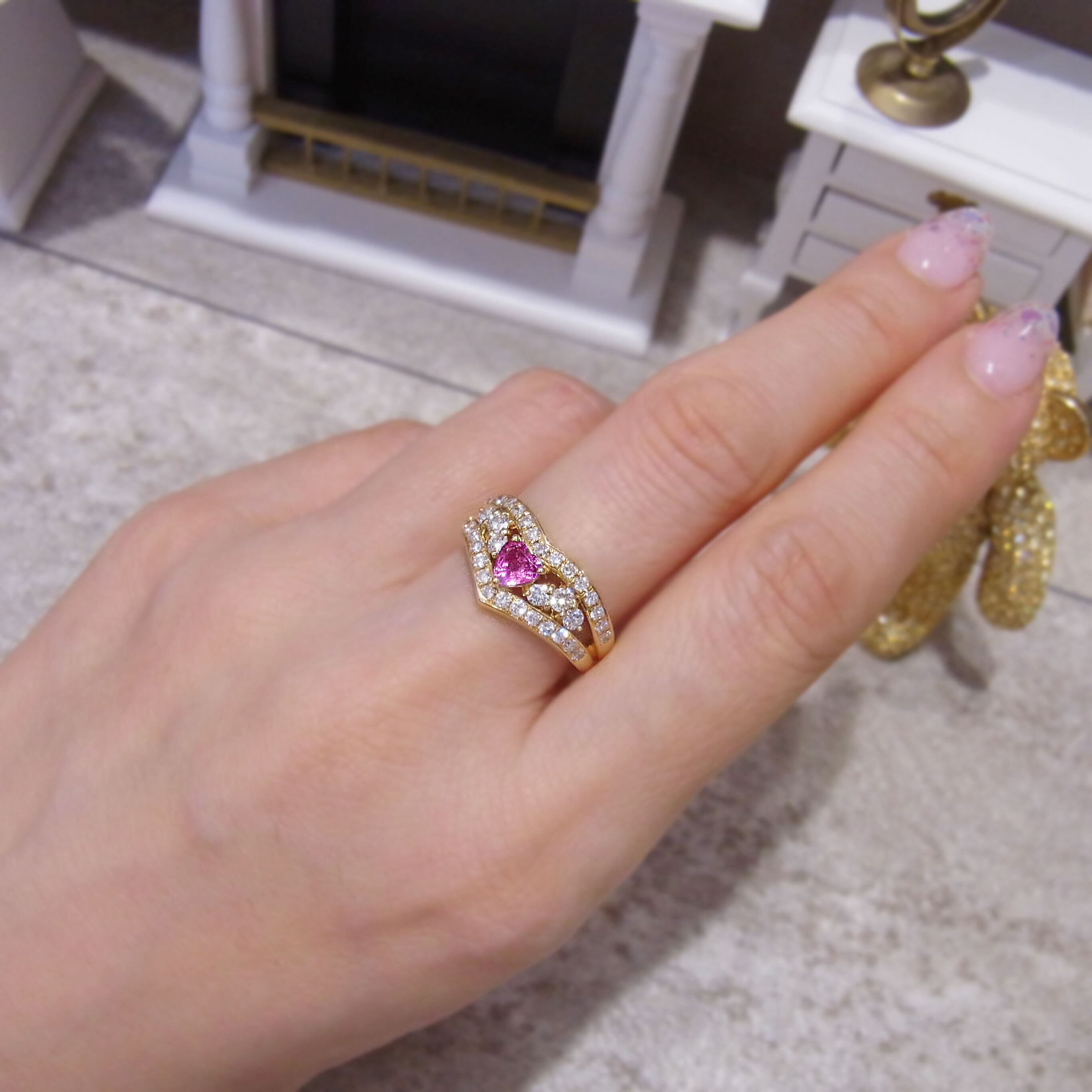 K18天然ピンクサファイア♡魔法のハートの王冠リング