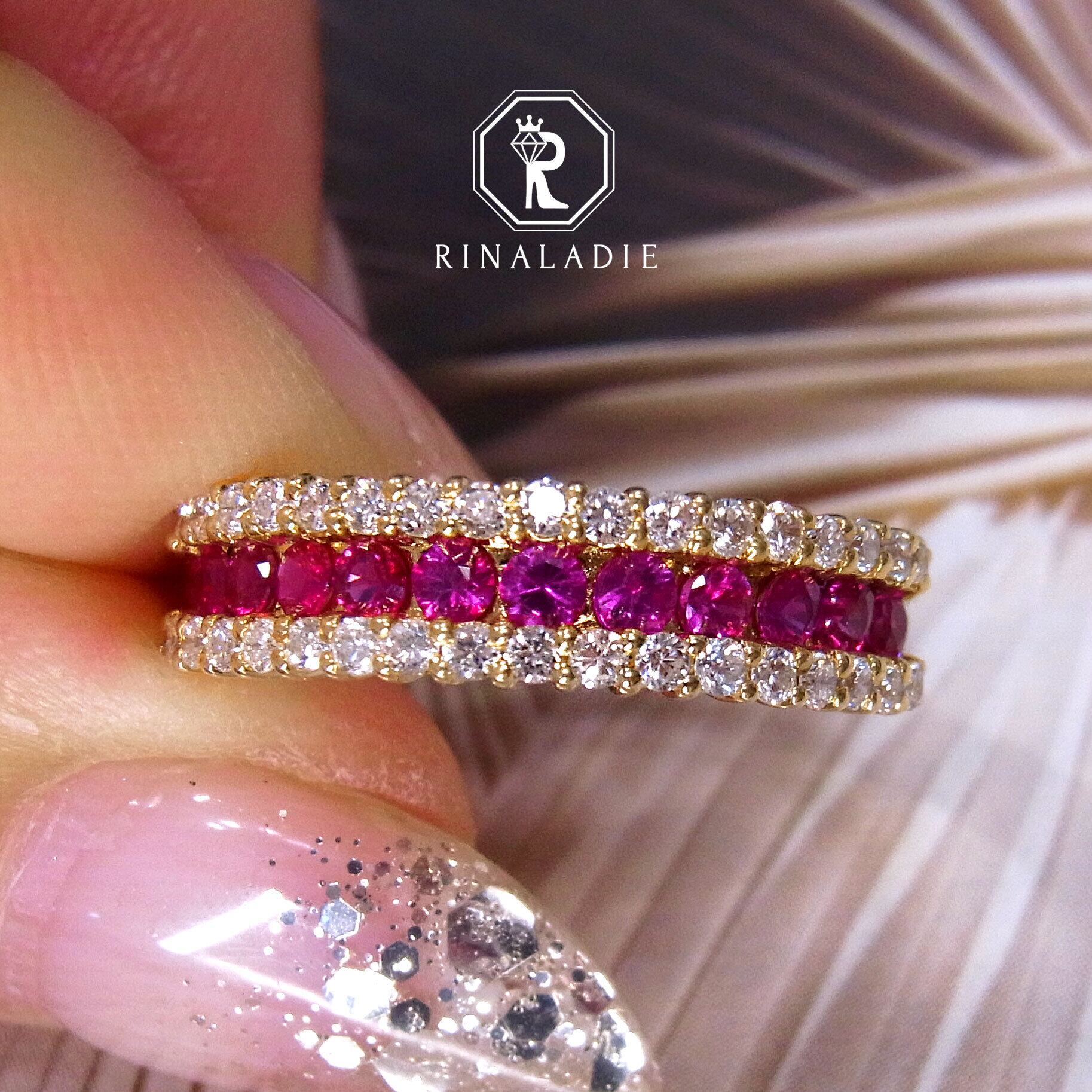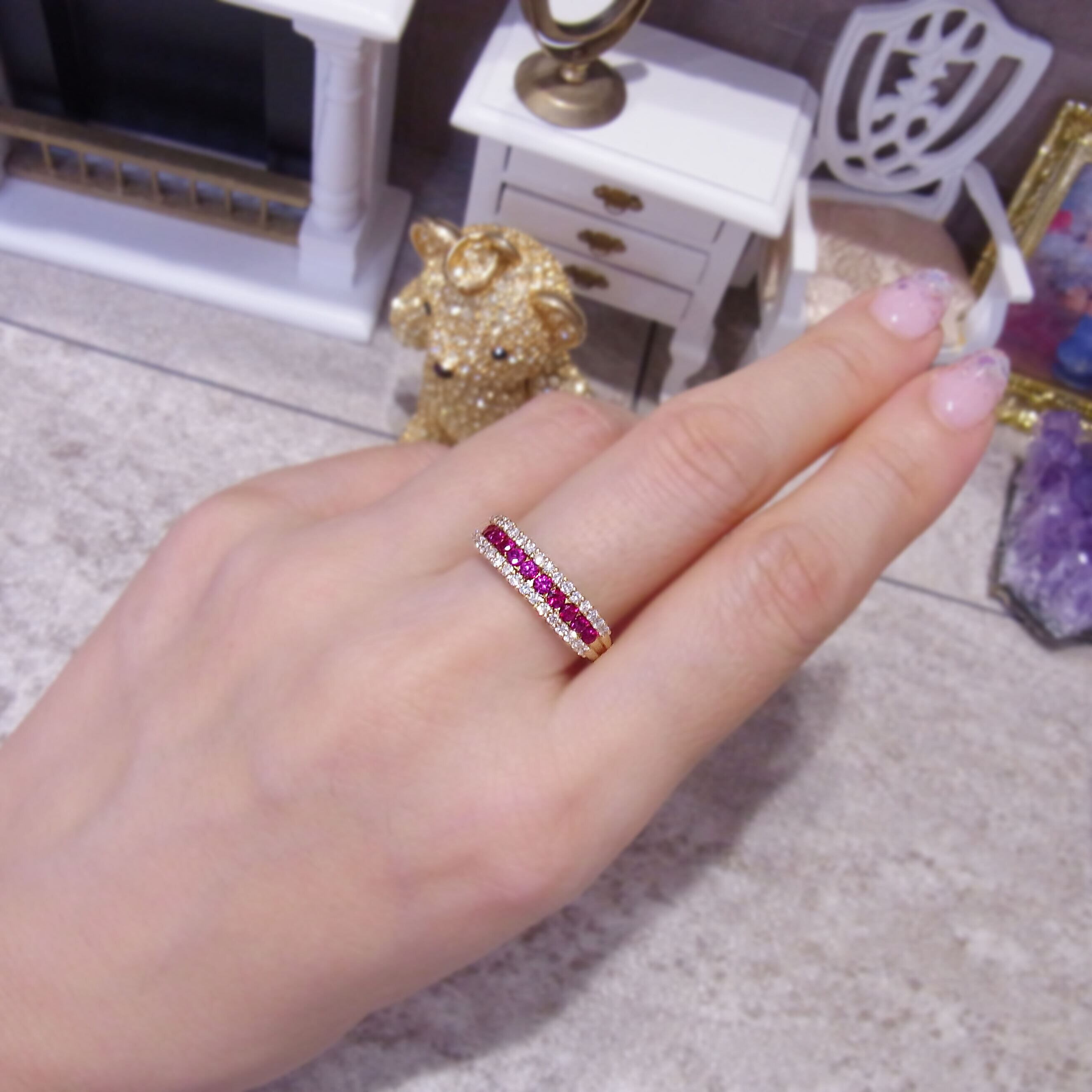 K18天然ルビー、天然ダイヤモンド、色っぽいストレートリング