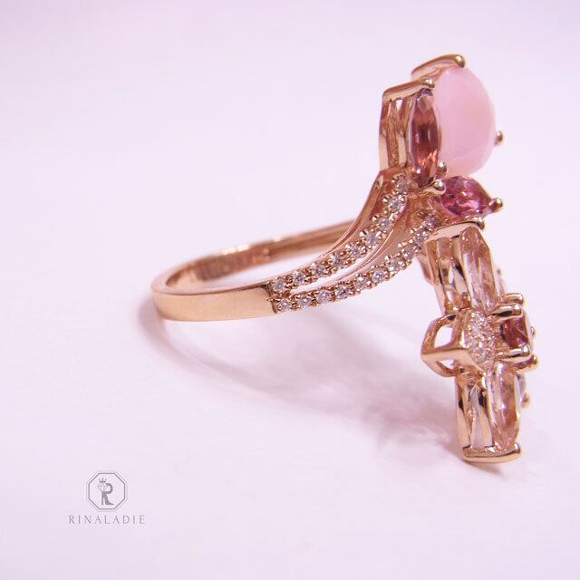大特価K18PG天然ピンクオパール、モルガナイト「Love me...」シリーズリング