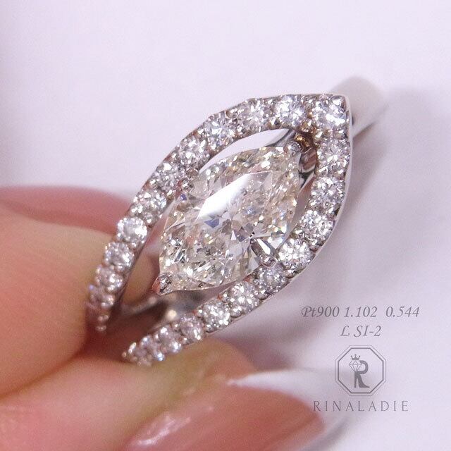 大特価Pt900天然ダイヤモンド大粒1.1ctマーキスのエレガント女王リング