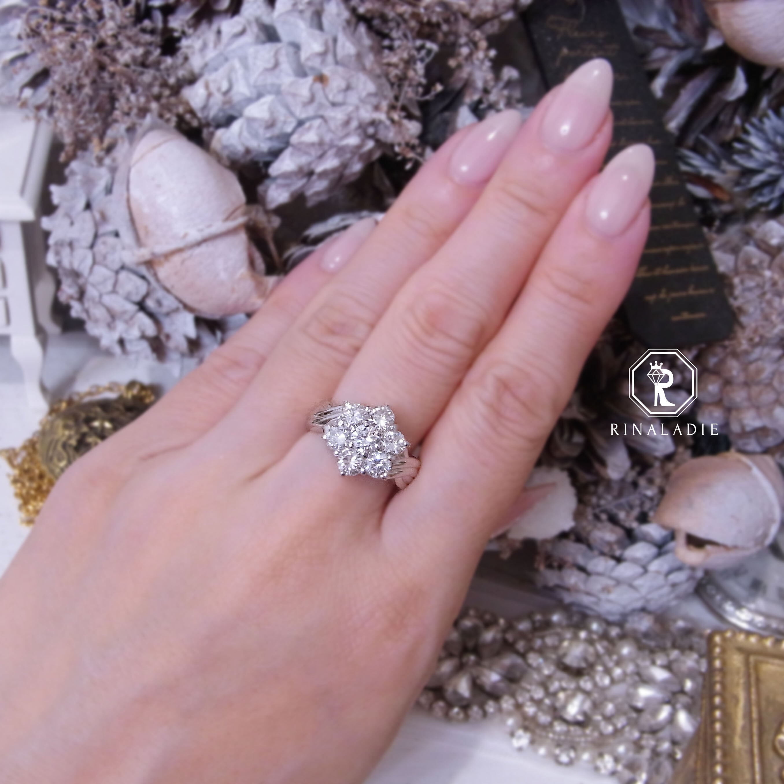 Pt900天然ダイヤモンド総2ctフラワーセブンスターゴージャスリング