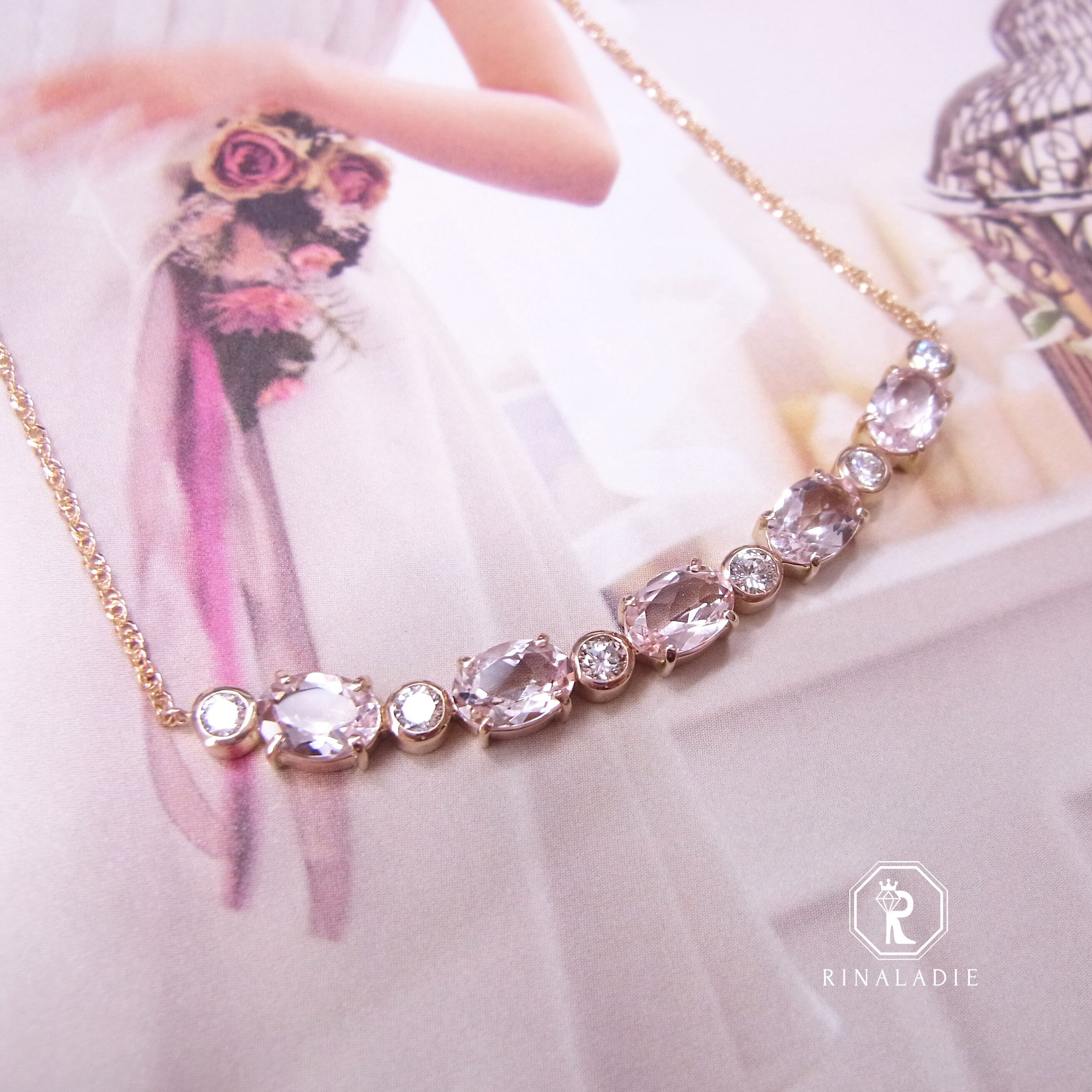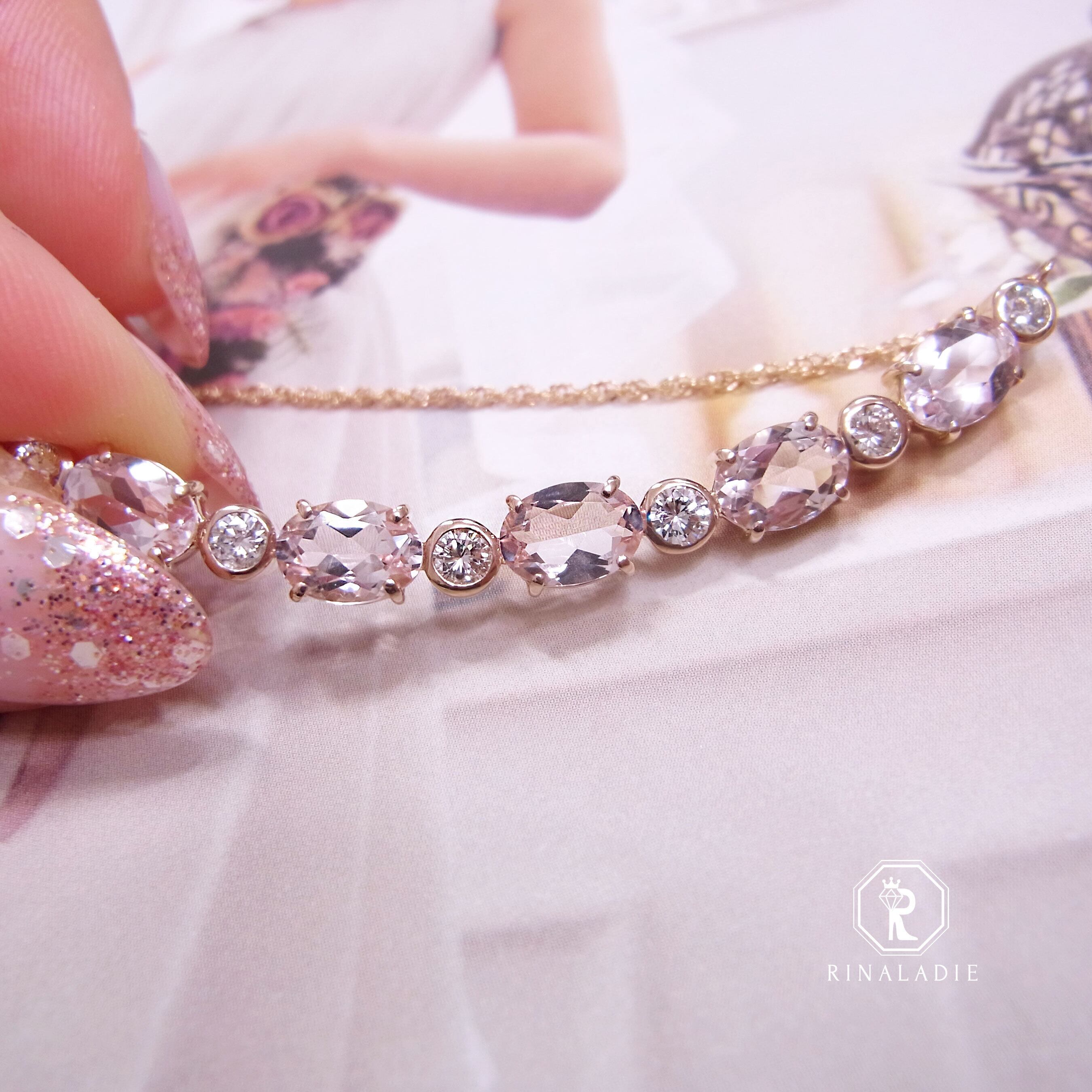 K18PG天然モルガナイトのうるうる華やか首飾り