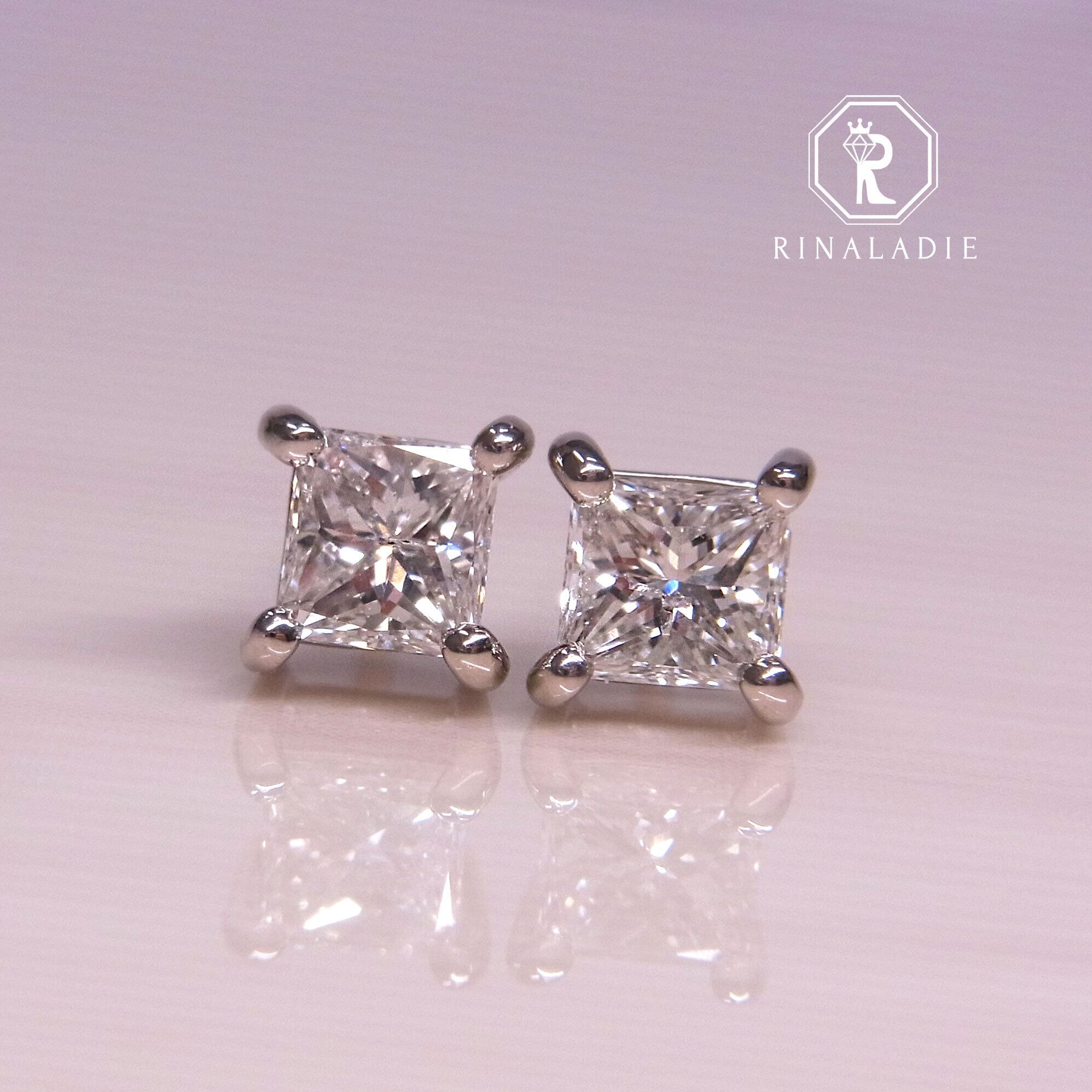 Pt900天然ダイヤモンド プリンセスカット スタイリッシュピアス